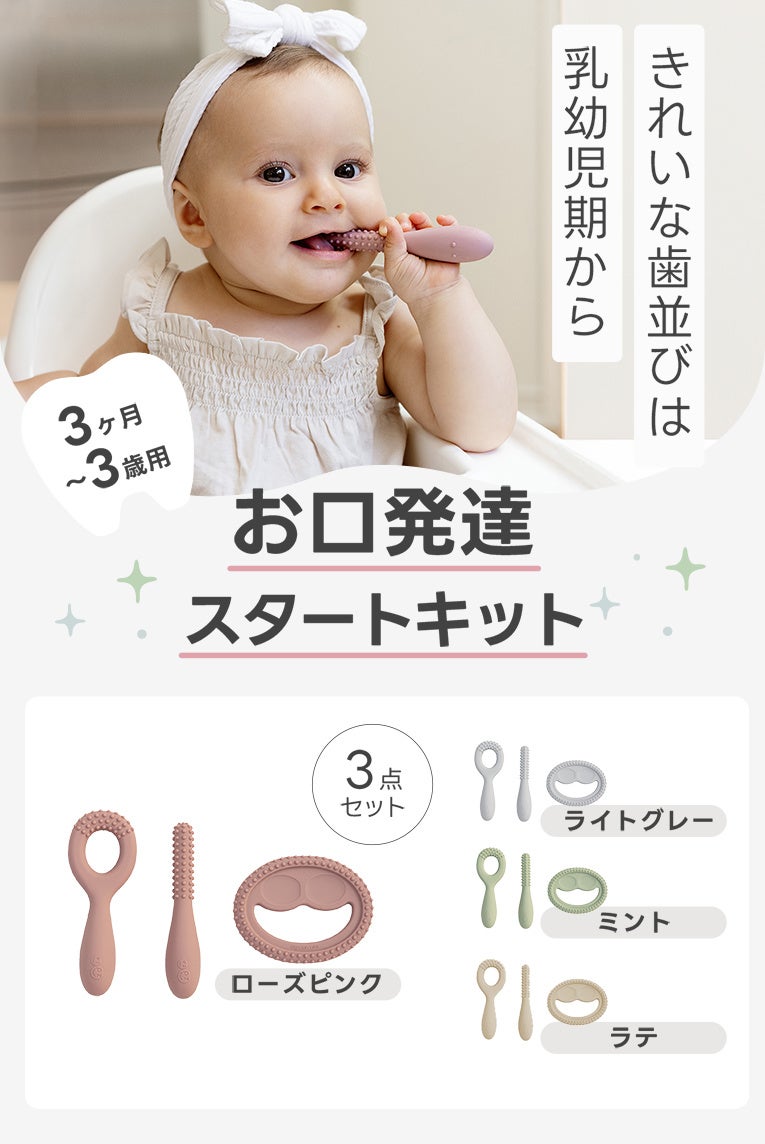 この商品は生後3ヶ月から飲み込む力、噛む力に必要とされる筋肉の成長を促してくれる事ができると思われます。