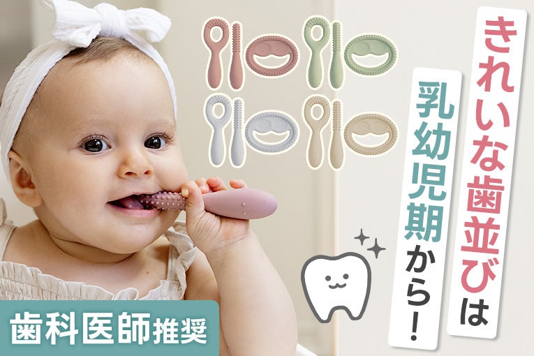 表面のポコポコとした突起は、乳歯が生え始める前の柔らかい歯茎を傷めることなく、乳歯が適正なタイミングで生えるように優しく刺激をします。