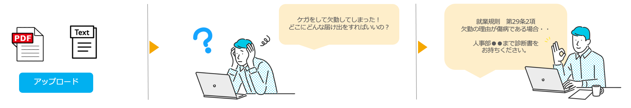 就業規則など、会社独自の規則や担当部署などをスムーズに案内。