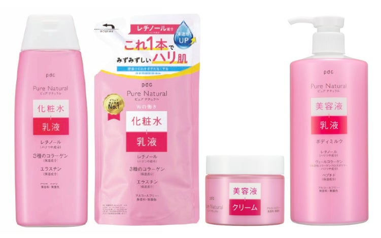 株式会社pdc(本社:東京都港区、代表取締役:藤井 敬⼆)は、当社を代表するスキンケアブランド『ピュア ナチュラル』の、乾燥によるくすみ・ハリつや不足にアプローチする「エッセンスローション リフト」「エッセンスローション リフト つめかえ用」「クリーム モイストリフト」を処方変更いたします。こっくりとしたテクスチャーから、べたつきなくより浸透*³を感じやすいテクスチャーへ。