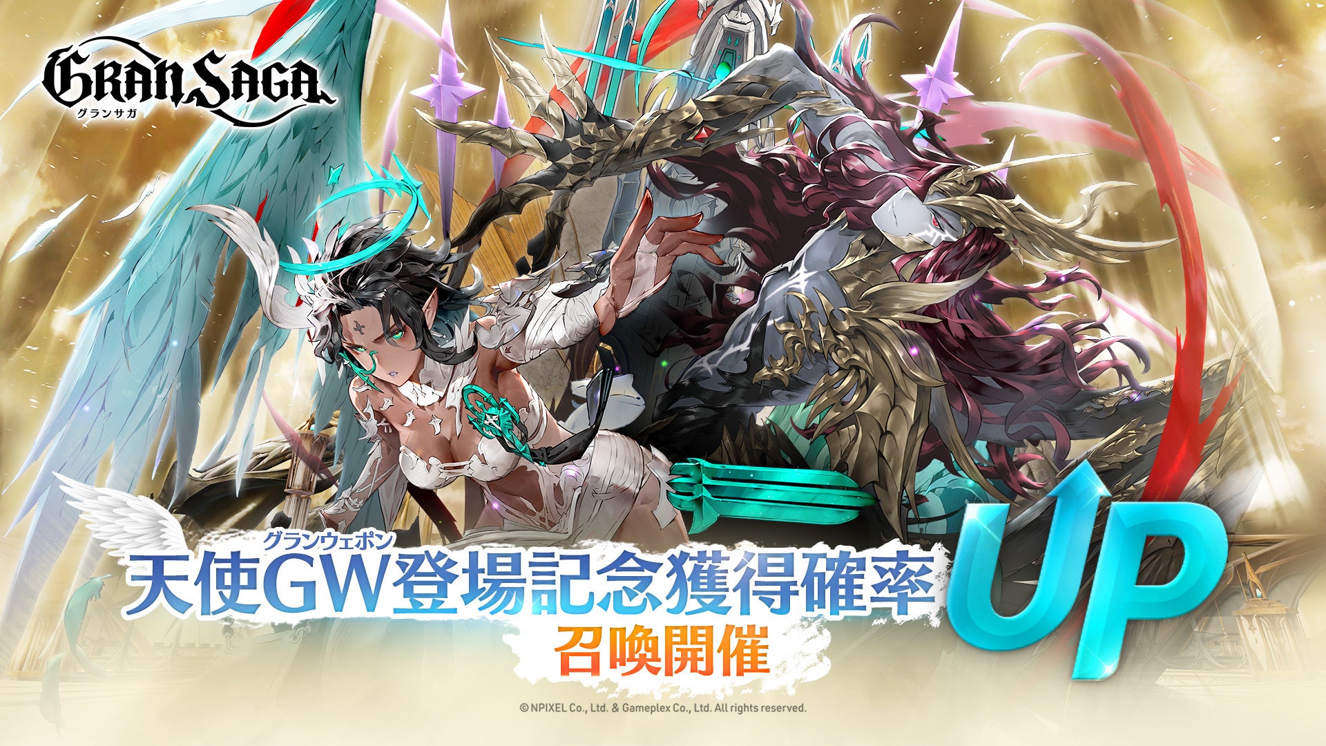 [召喚]に「天使GW登場記念獲得確率UP」召喚ページが追加され、対象のGW提供割合が上昇します。