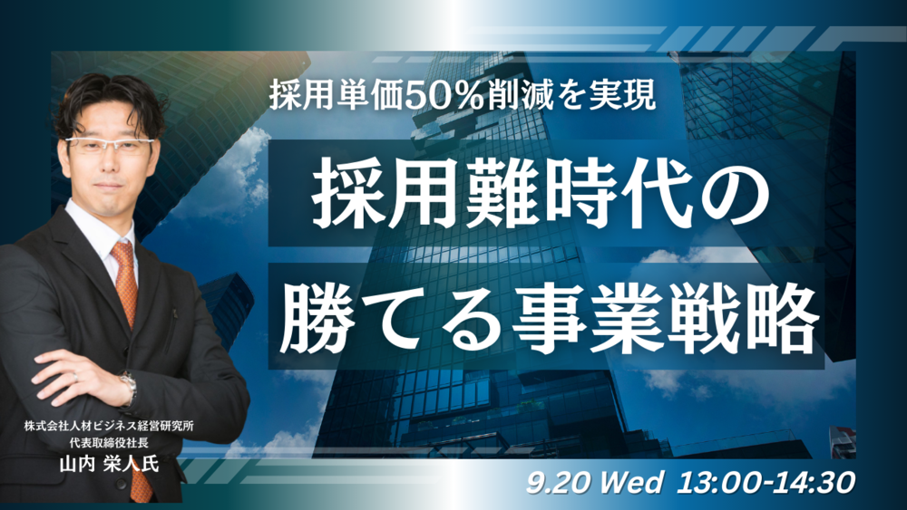 【9/20開催】採用が難しい時代、派遣会社が生き残るための「勝てる事業戦略」とは?~採用単価を50%削減する施策を解説~