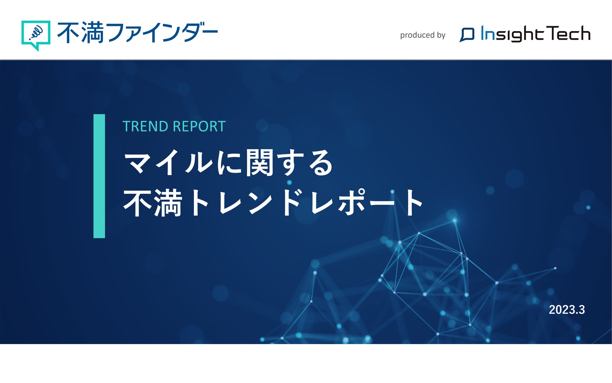 株式会社 Insight Tech(東京都新宿区、代表:伊藤友博、以下 Insight Tech)は、同社が運営する『不満買取センター』に寄せられた「マイル」「マイレージ」に関する不満を『不満ファインダー』を用いて解析・考察したレポートを公開しました。