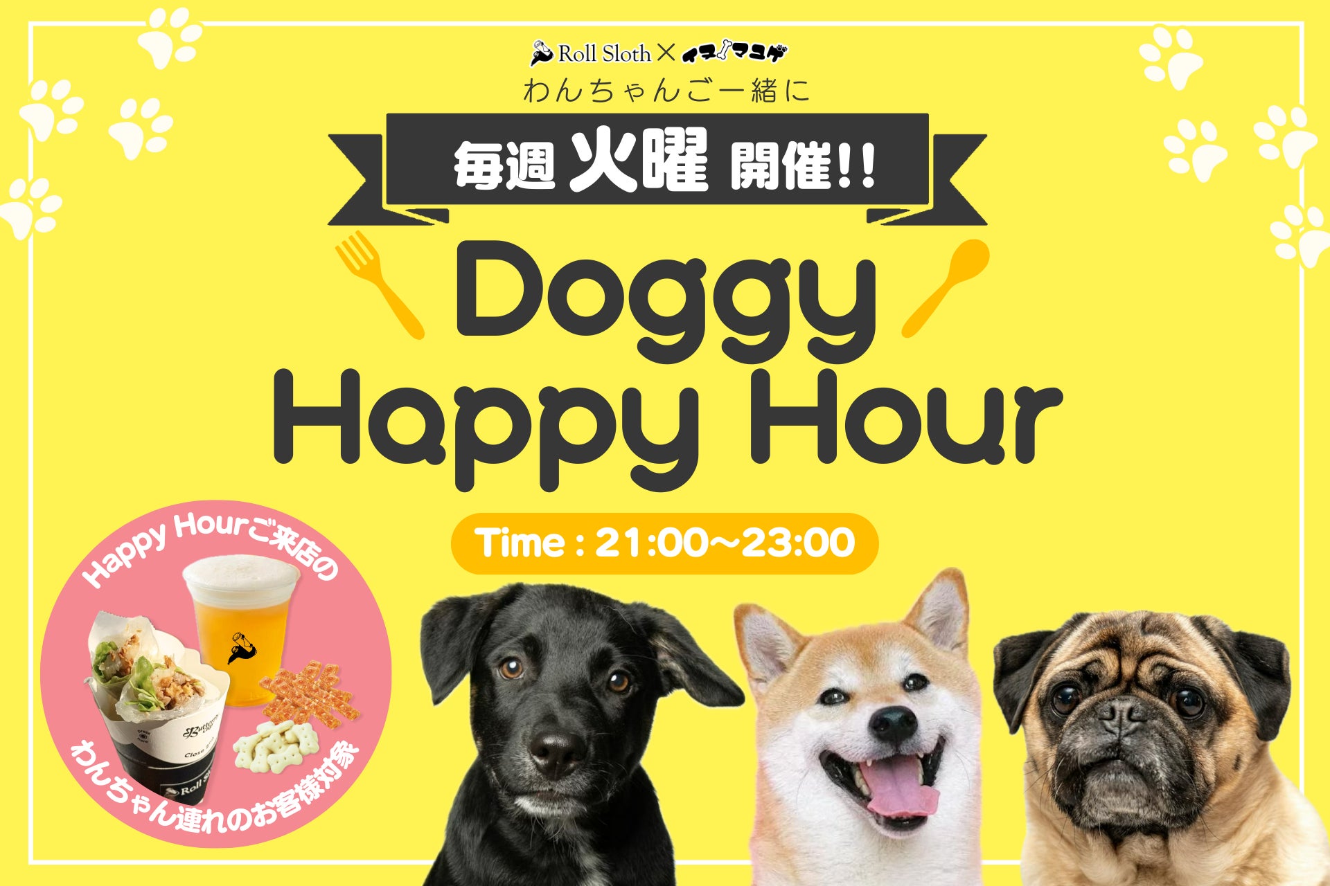 才能発信型飲食店 「Roll Sloth」の一号店である下北沢店は、わんちゃんをお散歩中の方、お連れの方を対象とした特別イベント 「Doggy Happy Hour」 を毎週火曜日に開催しています。