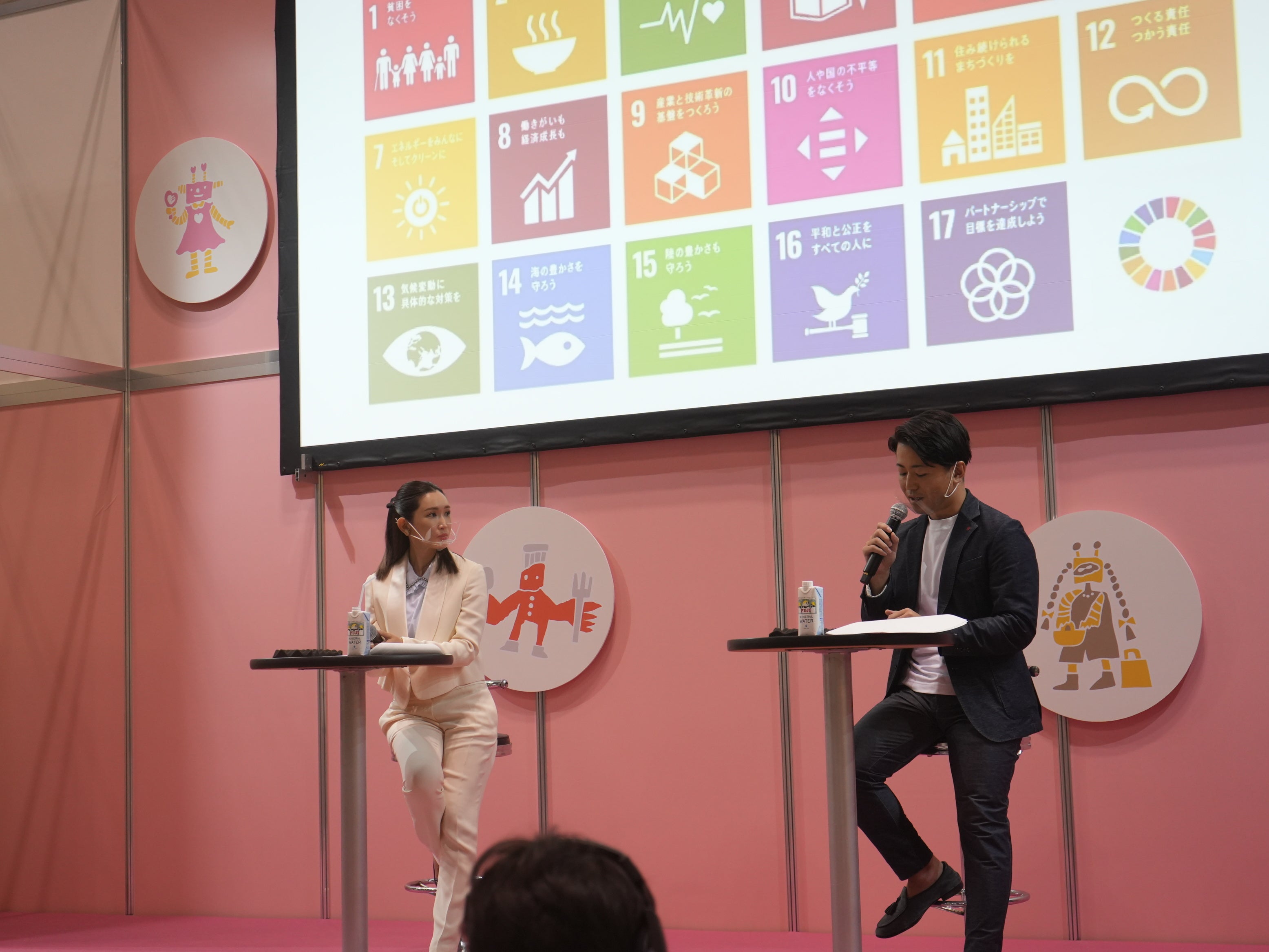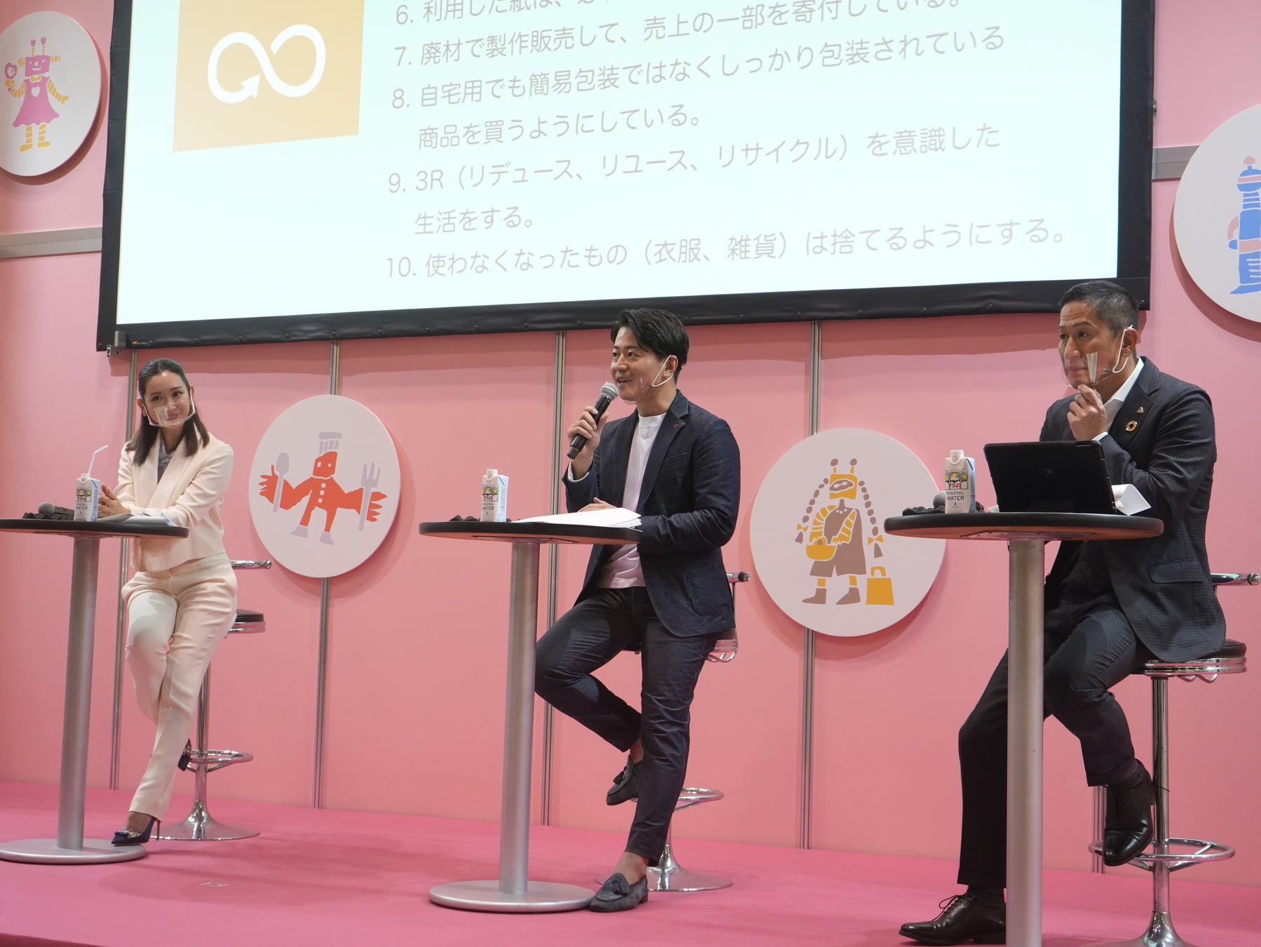 事前に「中小企業からニッポンを元気にプロジェクト」ブース内にて、ご来場いただいたお客様にSDGsに関するアンケートを実施し、その結果をもとに紗栄子さんや専門家の方々とBINGO大会を行いSDGsについて一緒に考えました。