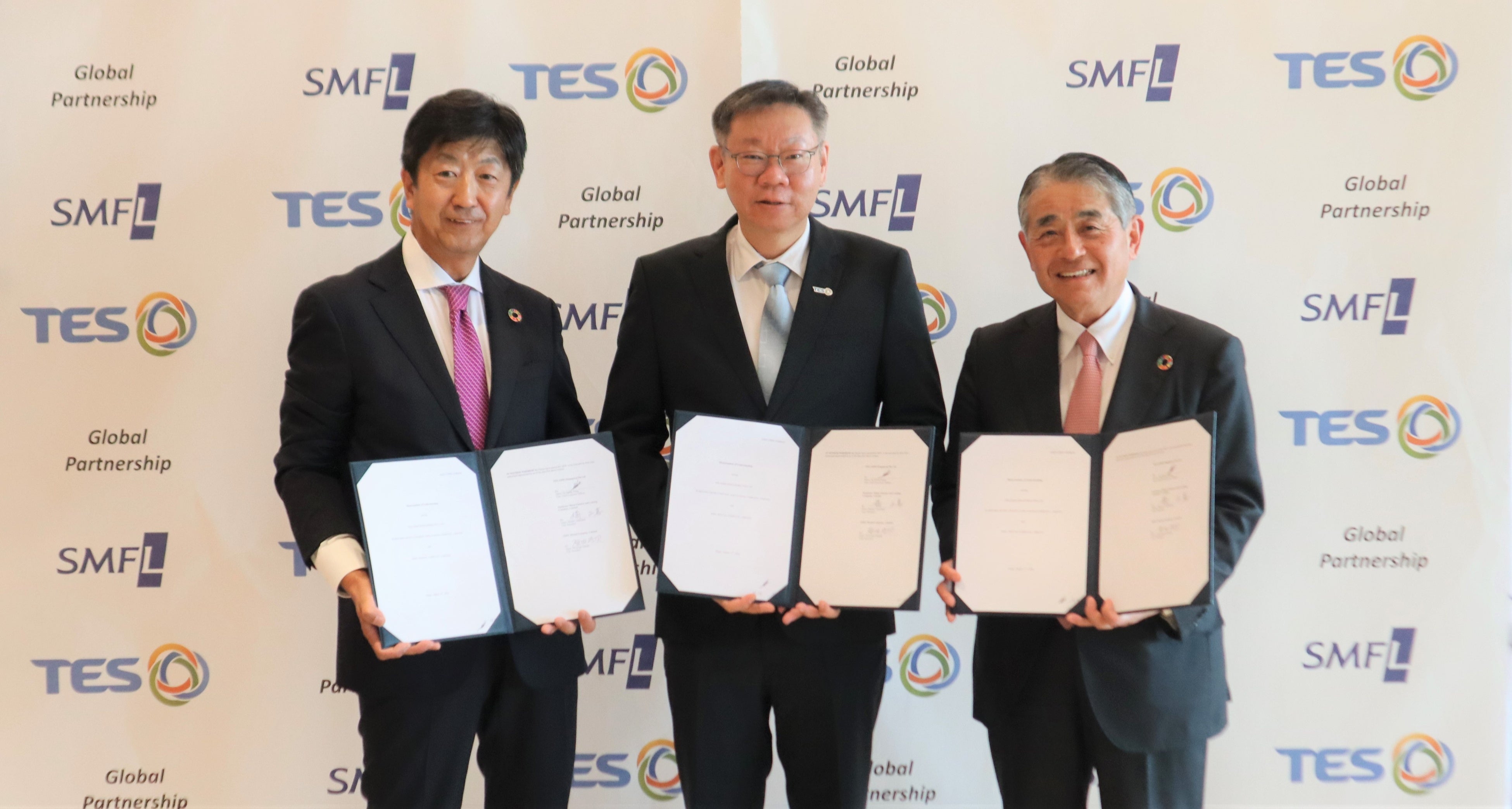 (左から)原田 浩次(SMFLレンタル:代表取締役社長)、Terence Ng(TES:CEO)、橘 正喜(SMFL:代表取締役社長)