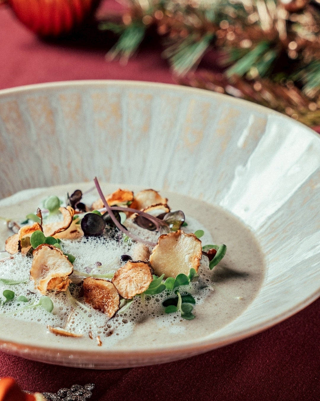 菊芋のヴェルッタータ 様々なきのこ香るエスプレッソ仕立て