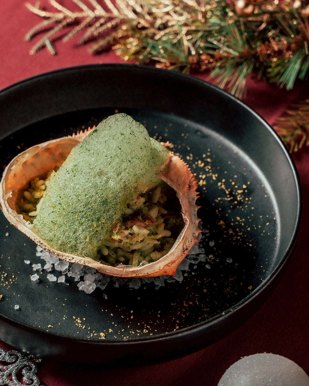 香箱ガニのリゾット 九条ネギのピュレと蟹のエキューム