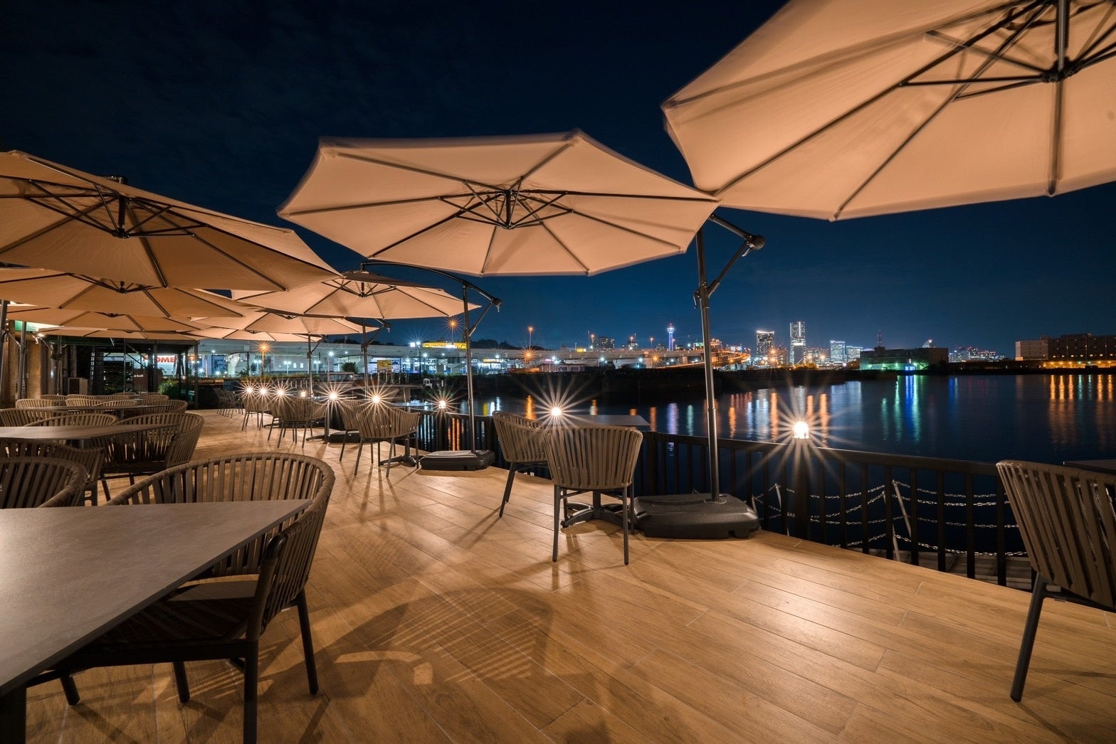 目の前に広がる海と“みなとみらい”を一望できる オーシャンフロントレストランです。絶景を堪能できるテラス席の他、ラグジュアリーな雰囲気が漂う屋内のテーブル席、ゲストと距離を縮めるバーカウンターなど、シーンに応じて使い分けられる表情の異なる空間をご用意しております。