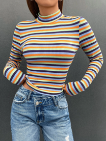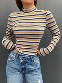 商品名 :SHEIN EZwear モックネック リブニット ストライプ Tシャツ