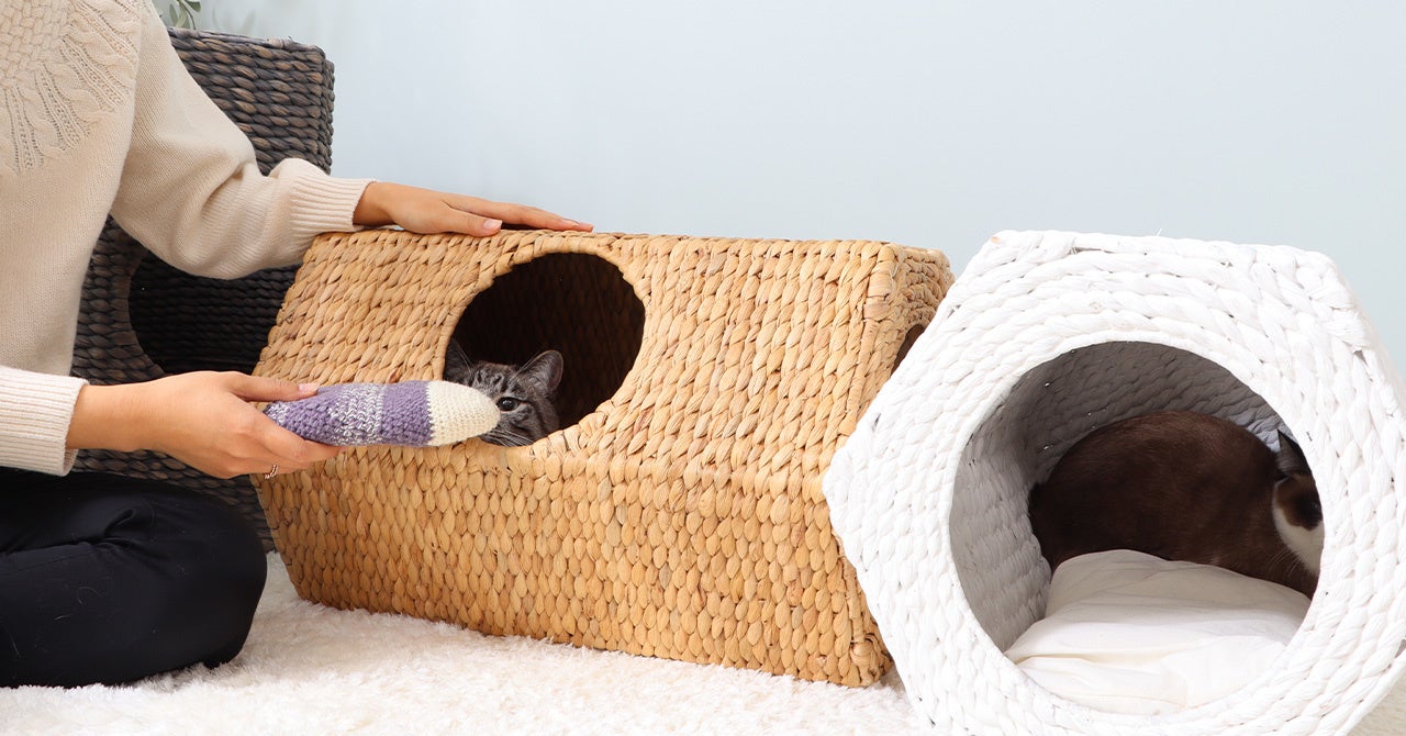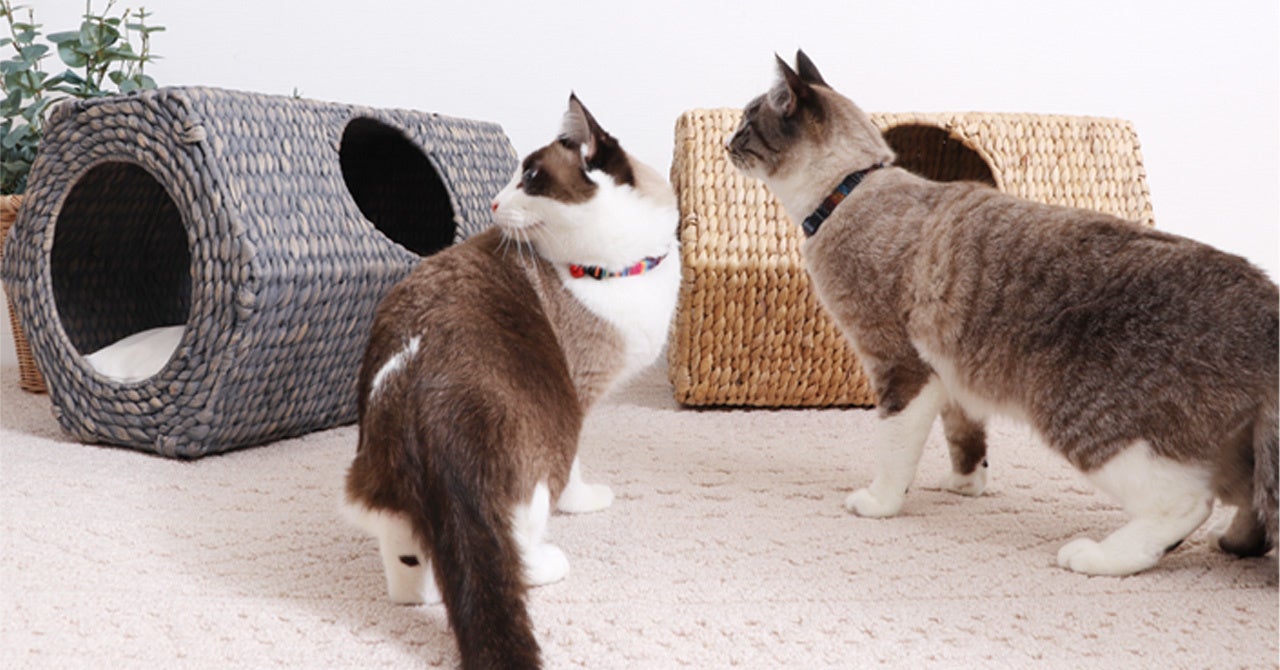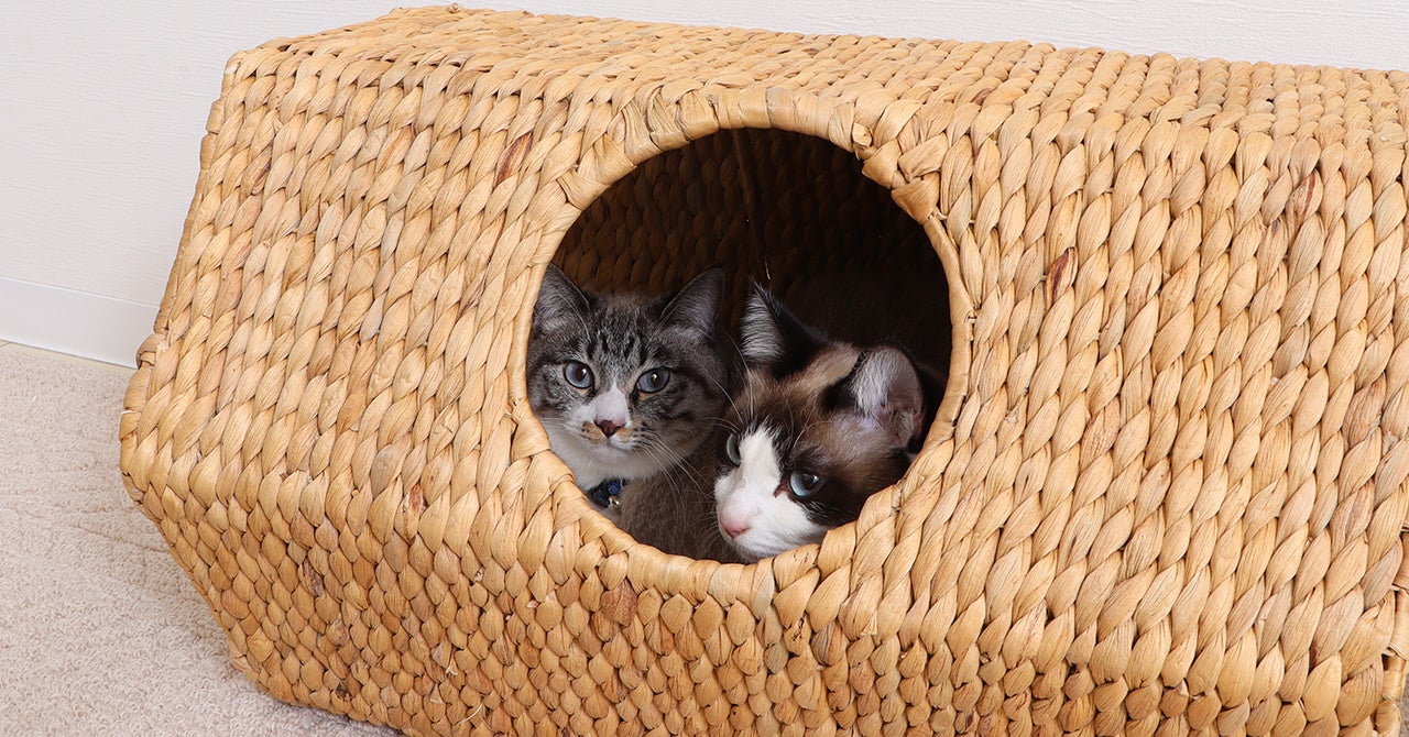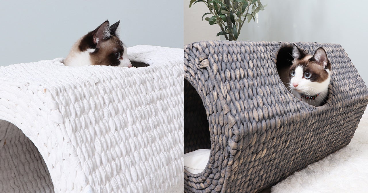 家具の企画、製造、販売を行う株式会社ヤマソロ(本社:兵庫県小野市、代表取締役社長:山本 一郎)が運営するインテリアECショップ『ヤマソロ公式 A LA MODE(アラモード)』から、どことなく「ドカン」を彷彿させる六角柱のカタチがユニークなペットハウス「nenne-kuusi-(ネンネクーシ)」が登場です。天然素材ウォーターヒヤシンスを使い柔らかい印象ですが、しっかりした枠組と安定した形状で縦にしても横にしても使うことが出来ます。内部はゆったりとしたサイズで2匹の猫ちゃんも仲良く入れ、2つ3つ...と合わせれば、猫ちゃんの大好きなトンネル遊びが楽しめます。多頭飼いのおうちにもピッタリな、遊んで眠れるペットハウスです。カラーはお部屋のインテリアに合わせやすい「ナチュラル」「グレー」「ホワイト」の3色展開。ペットとの暮らしがもっと楽しくなるペットハウス「nenne-kuusi-(ネンネクーシ)」は、ヤマソロオフィシャルストアにて販売しています。