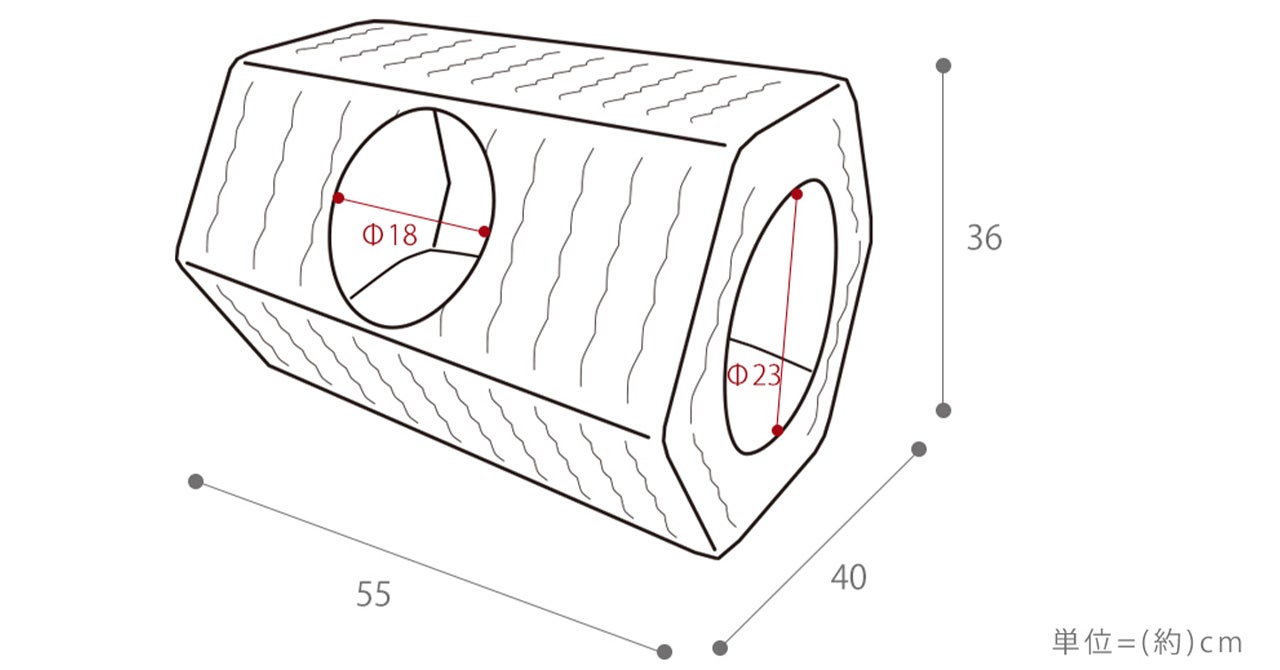 猫は暗いところや狭いところが大好き。長方形の面には小さな開口部が1つ、六角形の面には大きな開口部が1つあります。丸い穴が出入り口となったり、ひょっこり顔を出したり。猫ちゃんの可愛い姿をキャッチできます。