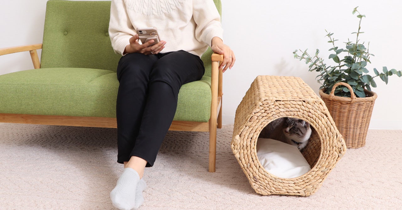 天然素材の魅力は、優しい印象だけではなく、お部屋の湿気を吸い、冬は水分を放出するという調湿機能があります。風が通るので熱やニオイもこもりにくく、猫ちゃんが快適に過ごすことができます。