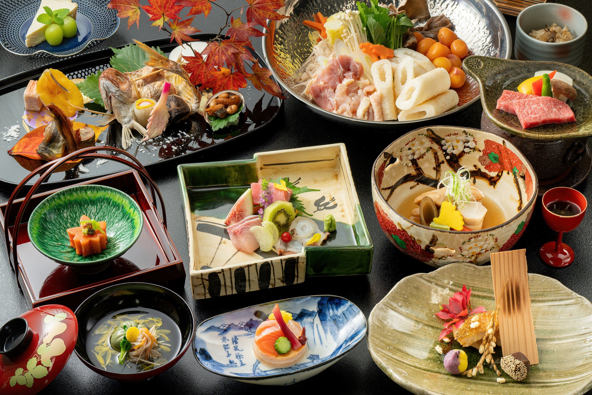 地元で採れた食材にこだわり、季節に合わせて旬の食材を使用した郷土会席料理でおもてなし。