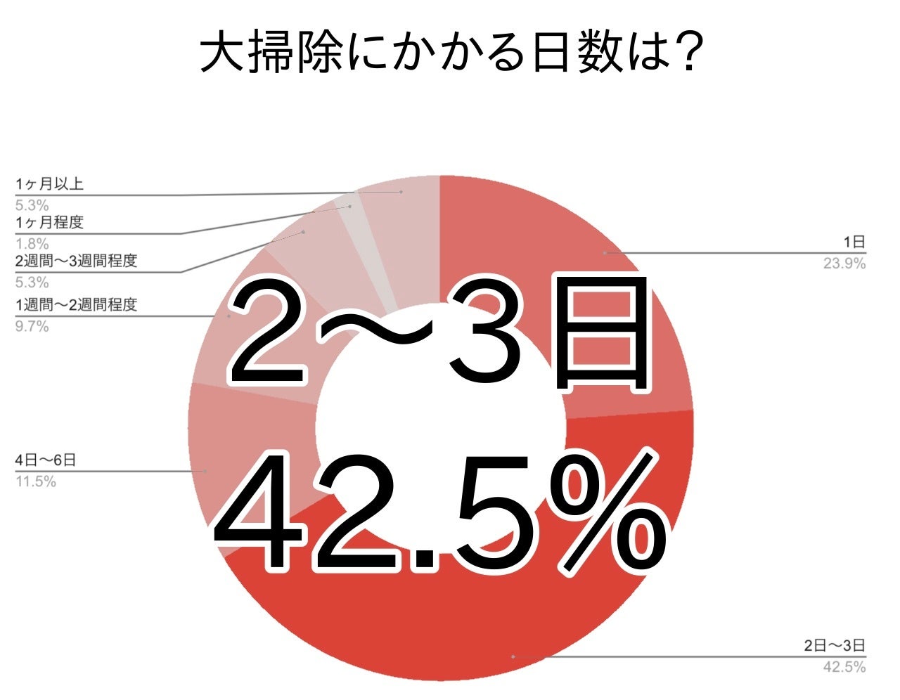 大掃除を12月中を中心に余裕をもって始める方が多いことが分かりましたが、大掃除に実際にかかっている日数はどのくらいなのでしょうか。アンケートで尋ねてみました。