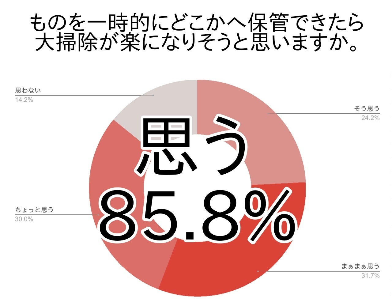 そこで、アンケートでは次に、ものを一時的にどこかへ保管できたら大掃除が楽になりそうと思うか尋ねました。