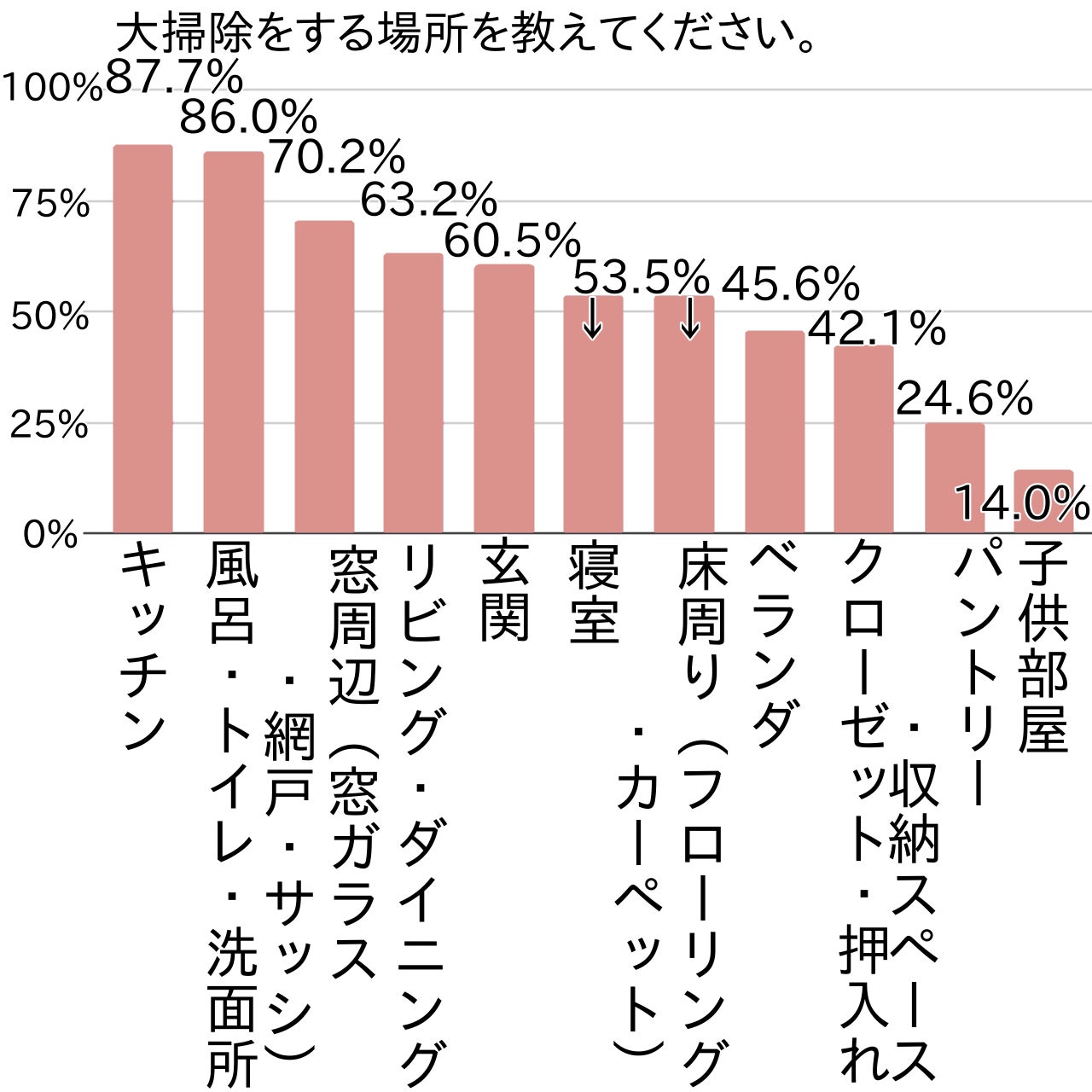 アンケートでは次に、大掃除をする場所について尋ねてみました。