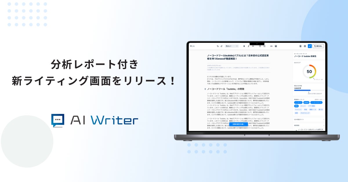 「AI Writer」が新ライティング画面をリリース!記事作成フローを革新する分析レポート機能