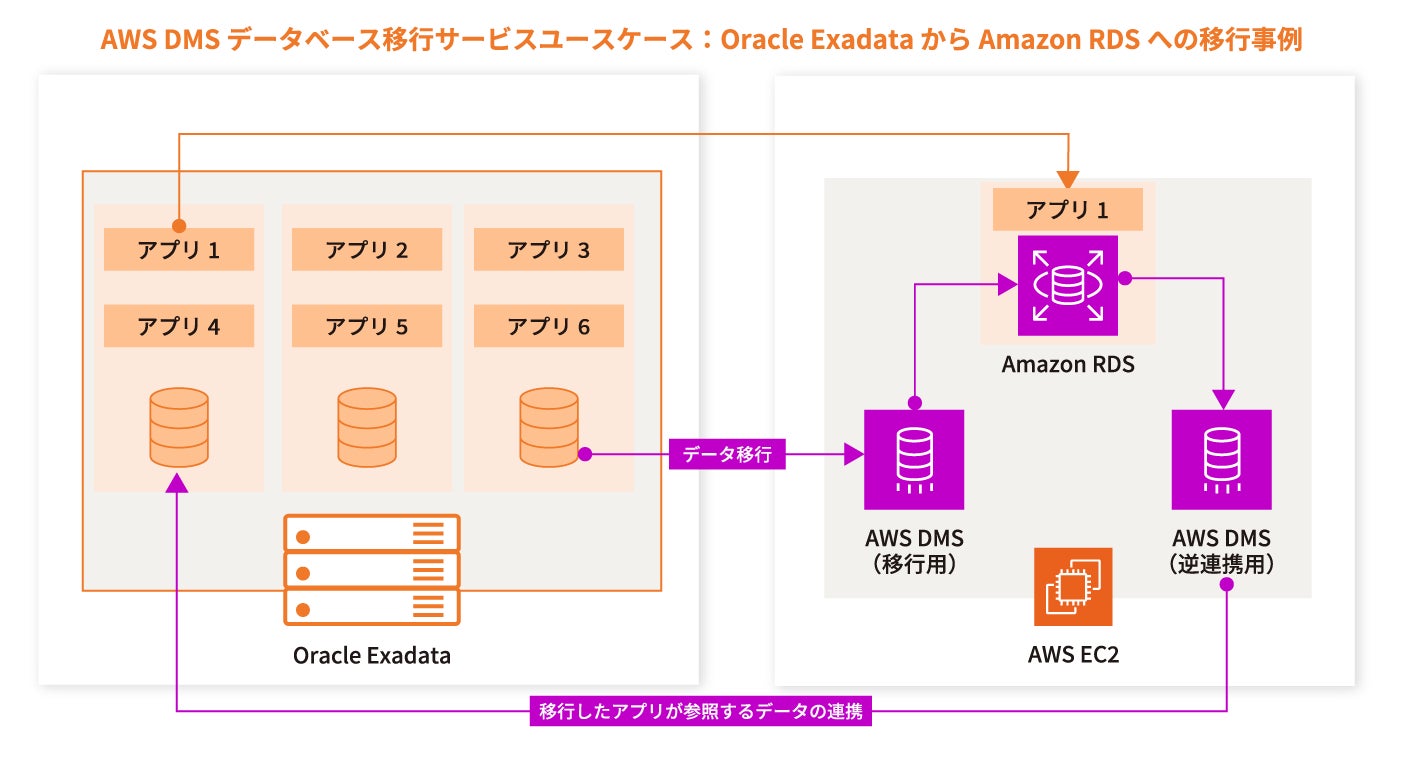 データ移行にはAWS DMS (Database Migration Service)を使用します。