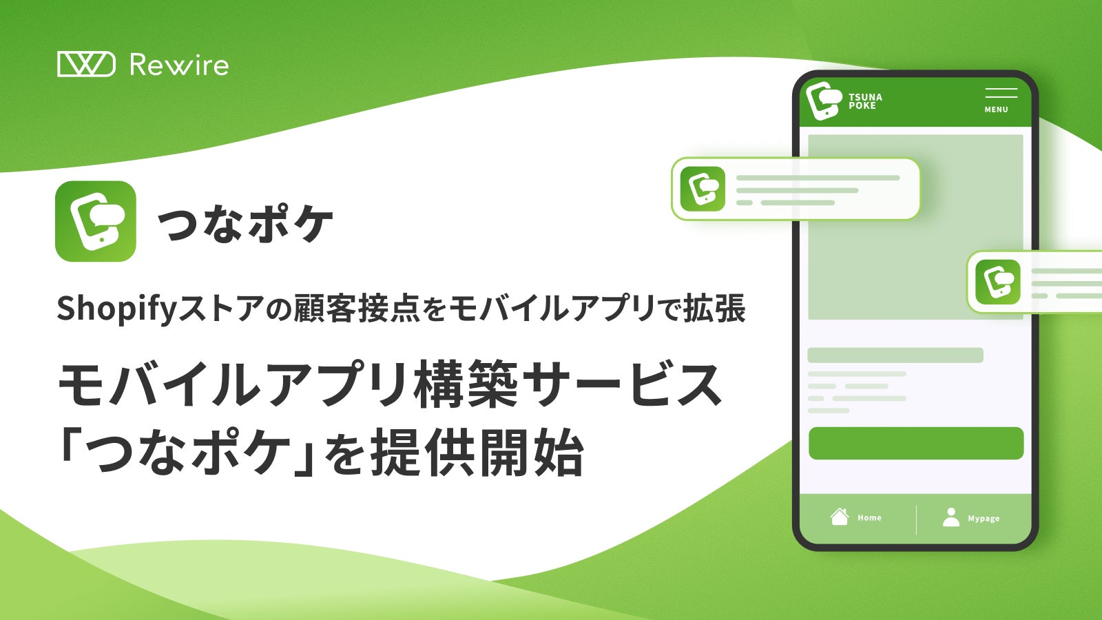 株式会社リワイア(所在地:東京都港区、代表取締役:加藤 英也、以下「リワイア」)は、グローバルコマースをリードするShopify(ショッピファイ)のオンラインストアを基盤としたモバイルアプリ構築サービス「つなポケ」の提供を開始しました。