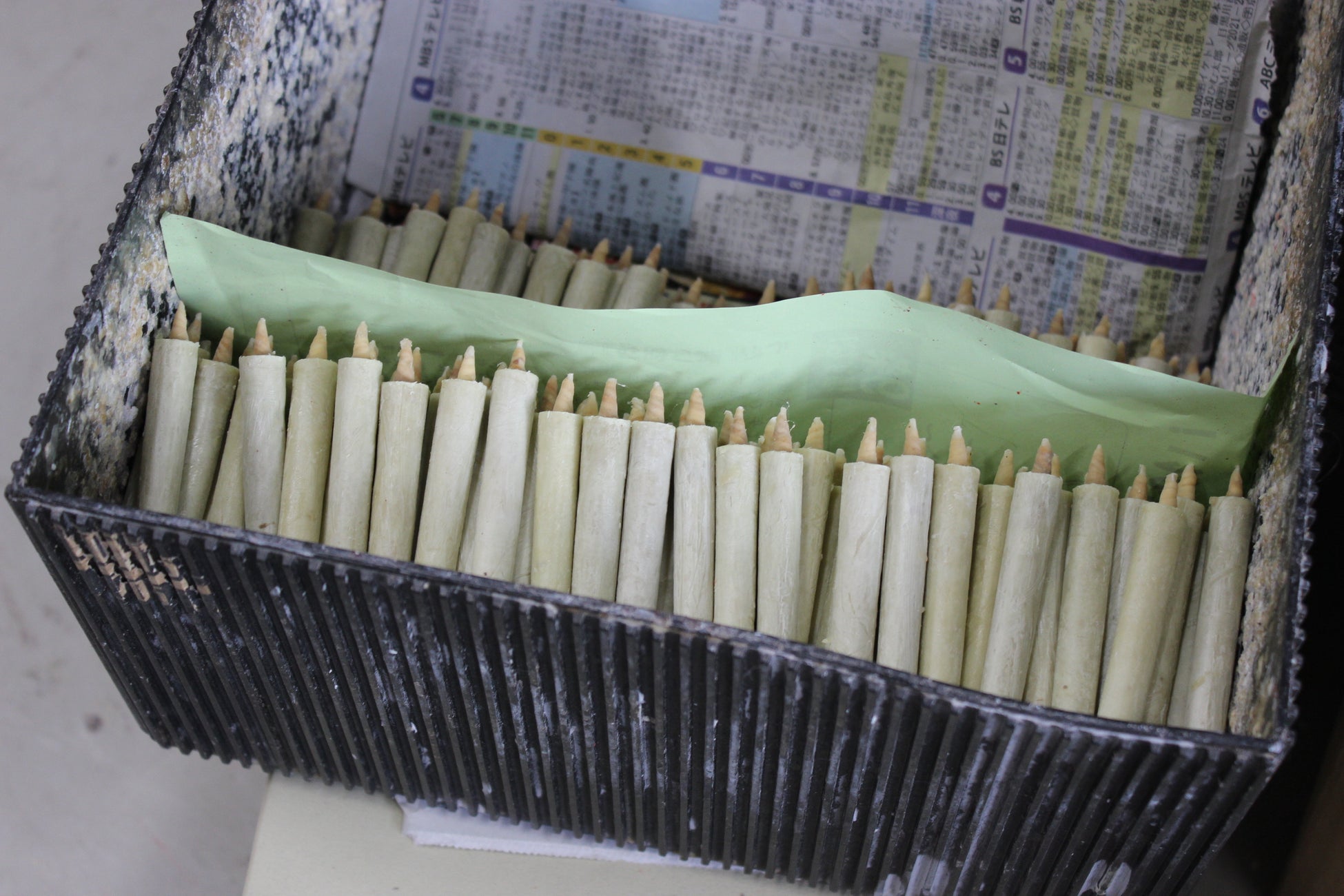 この3つの特徴をもつのが琵琶湖の西岸、滋賀県高島市で大正3年より、古くから手掛け製法でろうそく製造業を営む”近江手造り和ろうそく大與(だいよ)”の和ろうそくです。櫨やお米といった植物性の蝋を原料として作られている和ろうそく。そのやわらかな炎を暮らしの中に取り入れてみてはいかがでしょうか?