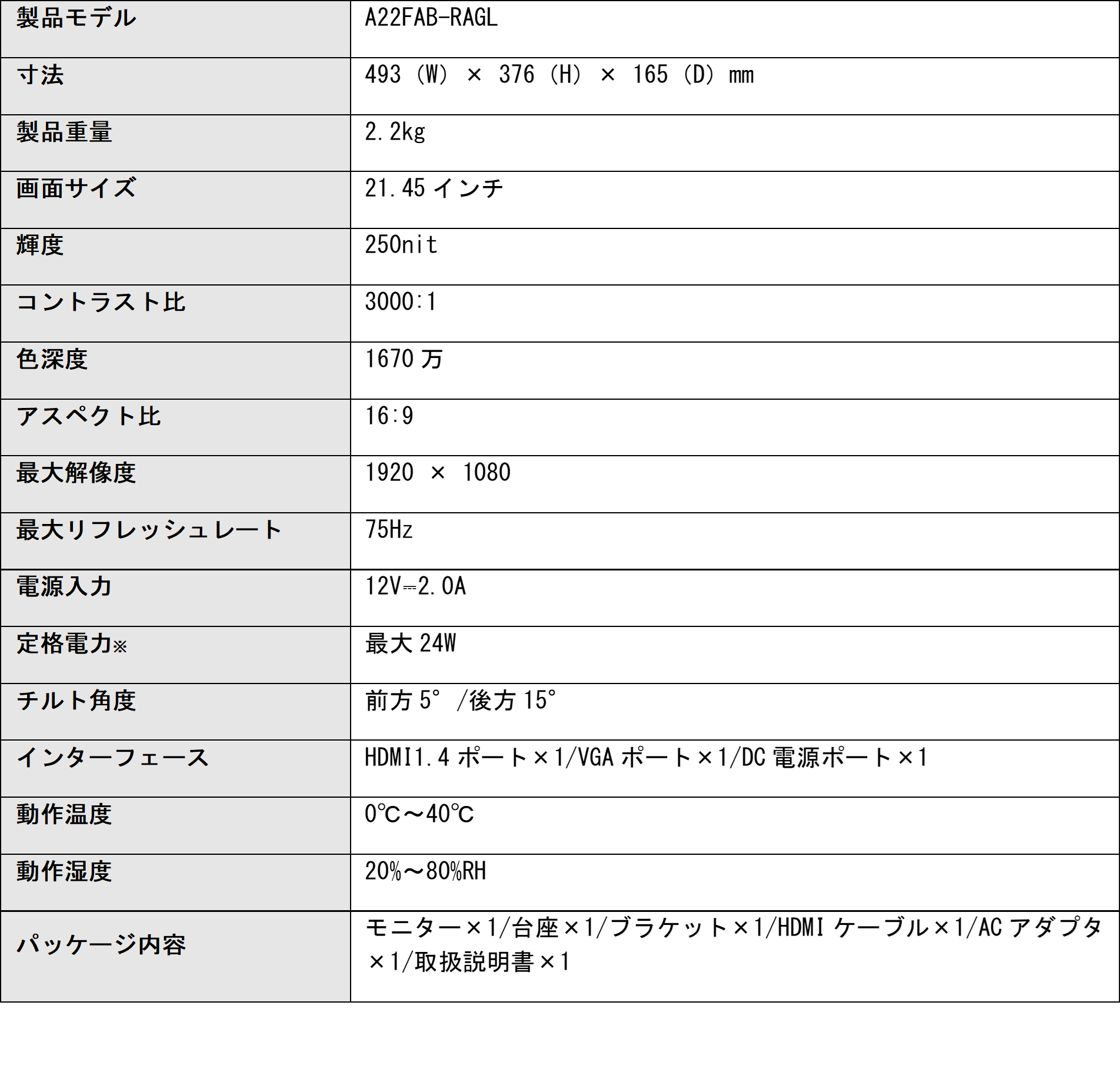 Xiaomi公式サイト(mi.com):https://www.mi.com/jp/product/xiaomi-monitor-a22i