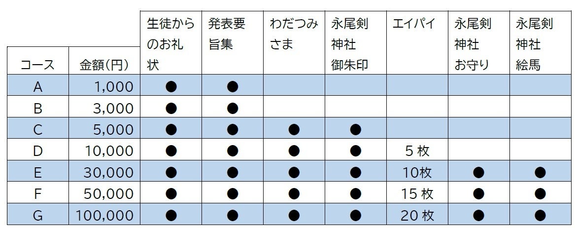 ※今回のプロジェクトにおいては、7種類の支援コースをご準備しました。支援金額に応じて、返礼品をお届けします。