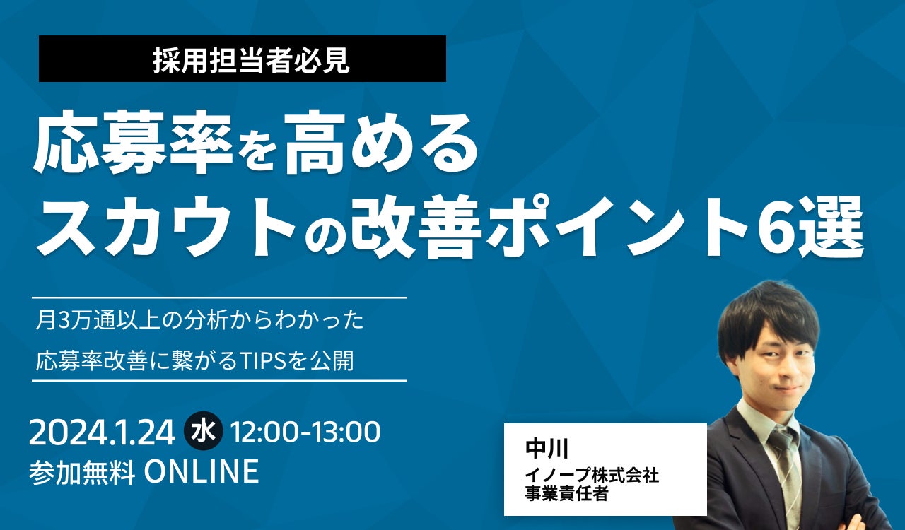 【参加者特典決定】採用担当必見セミナー「応募率を高めるスカウトの改善ポイント6選」