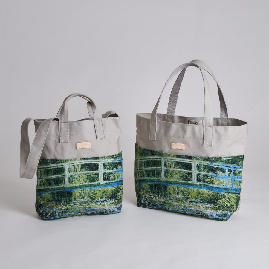 左)キャンバスショルダートートバッグ | 睡蓮の池と日本の橋
