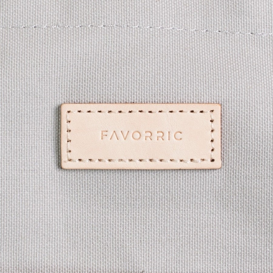 本体には上品で丈夫な9号帆布、外ポケットには軽さを考慮した11号帆布を使用。毎日使いやすく、しっかりと強度を保ちながらも「軽さ」にもこだわりました。また、ヌメ革のロゴがさりげなく上質感を印象付けます。