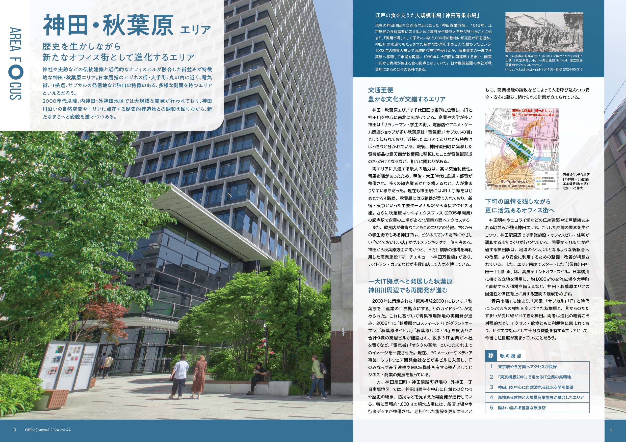 また、エリア特集では、神社や史跡などの伝統建築と近代的なオフィスビルが融合した街並みが特徴的な「神田・秋葉原エリア」を紹介。