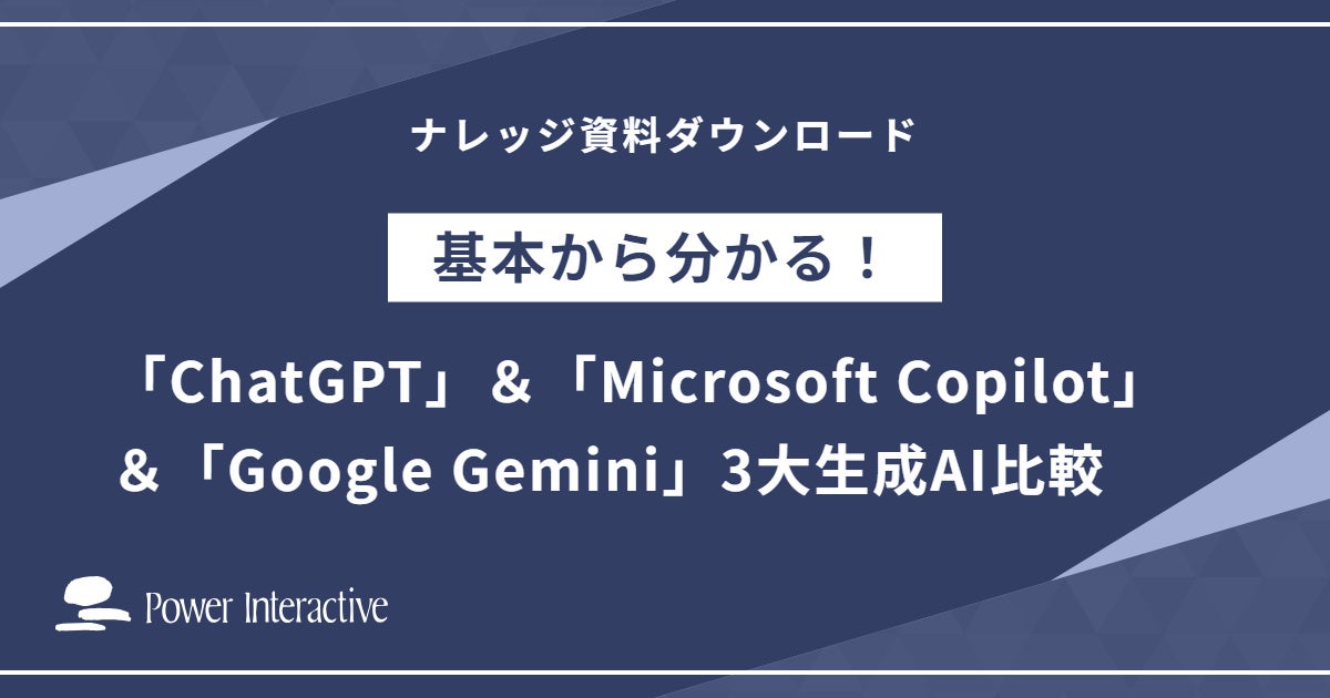 デジタルマーケティングのコンサルティングを行う株式会社パワー・インタラクティブ(大阪市中央区、代表取締役:岡本充智)は、『基本から分かる!「ChatGPT」&「Microsoft Copilot」&「Google Gemini」3大生成AI比較』を2024年3月22日に公開しました。