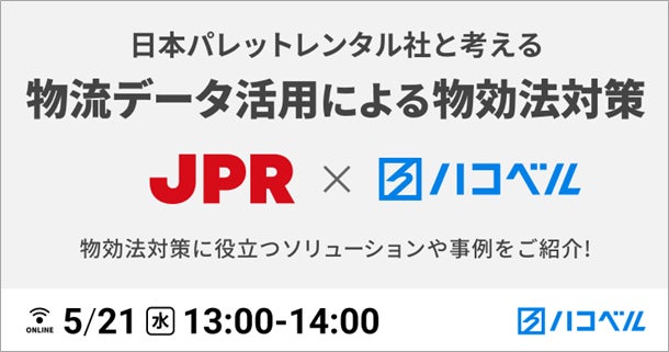 日本パレットレンタル株式会社(東京都千代田区 代表取締役社長 二村篤志 以下、JPR)は、ハコベル株式会社(本社:東京都中央区、代表取締役社長CEO:狭間健志、以下 ハコベル)が2025年5月21日(水)に主催するウェビナー「物流データ活用による物効法対策」において講演を行うことをお知らせいたします。