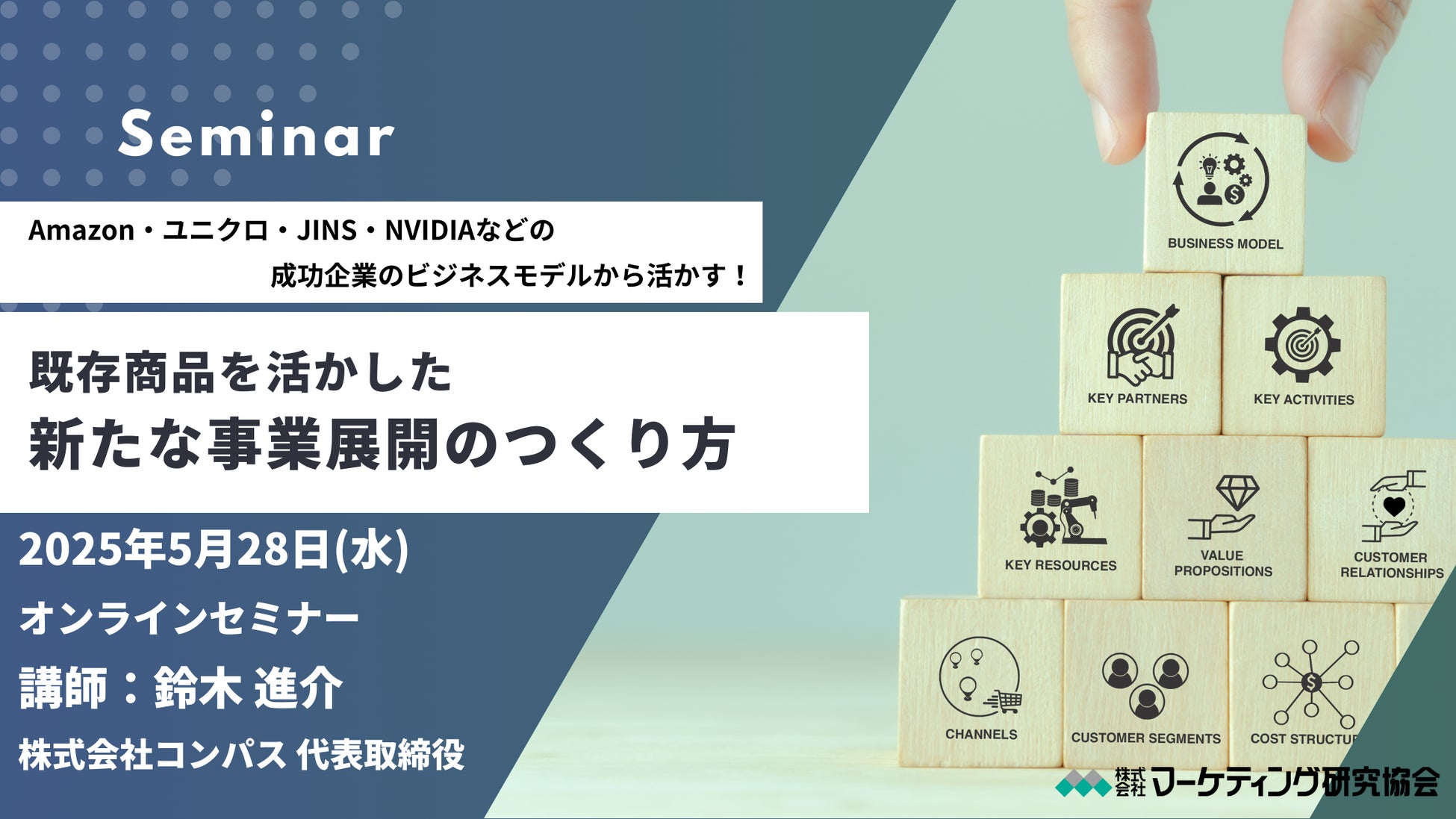 既存商品・サービスを活かした「新たな事業展開」のつく方セミナー開催 成功企業の事例を読み解き活かす!5月28日開催 マーケティング研究協会
