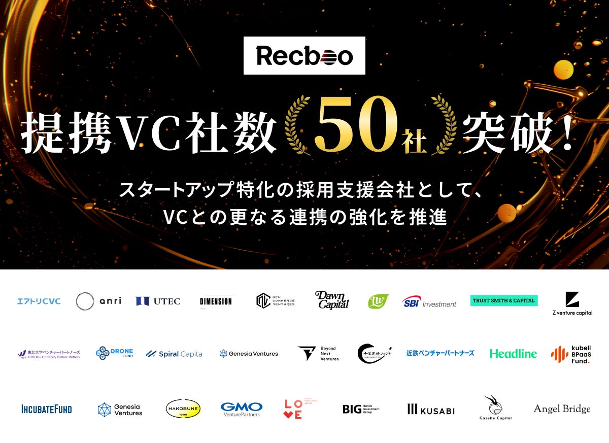 【Recboo】国内の主要VCとの提携社数50社を突破!スタートアップの中途採用支援体制を確立。