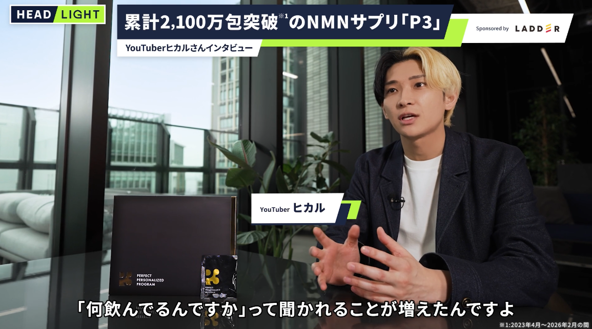 この度、YouTuberヒカルプロデュース「P3」を提供する株式会社LADDER(所在地:東京都港区、代表者:代表取締役 持丸正裕)は、4月20日(月)よりヒカルが出演するタイアップ動画の放映を都内最大級(※1)のメディア「GROWTH」が展開する移動時間の情報番組「HEADLIGHT」にて、放映開始しました。
