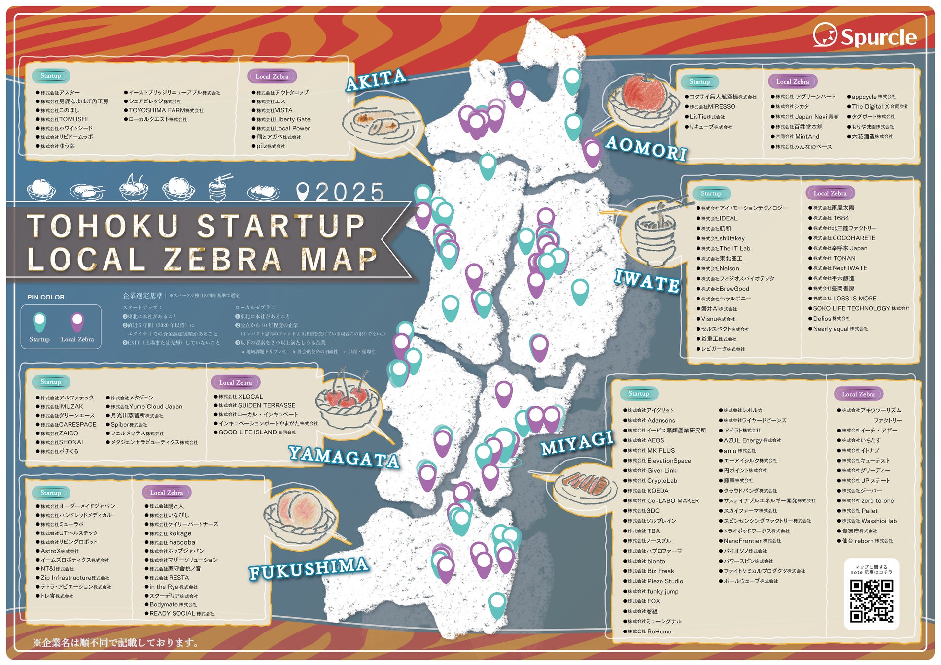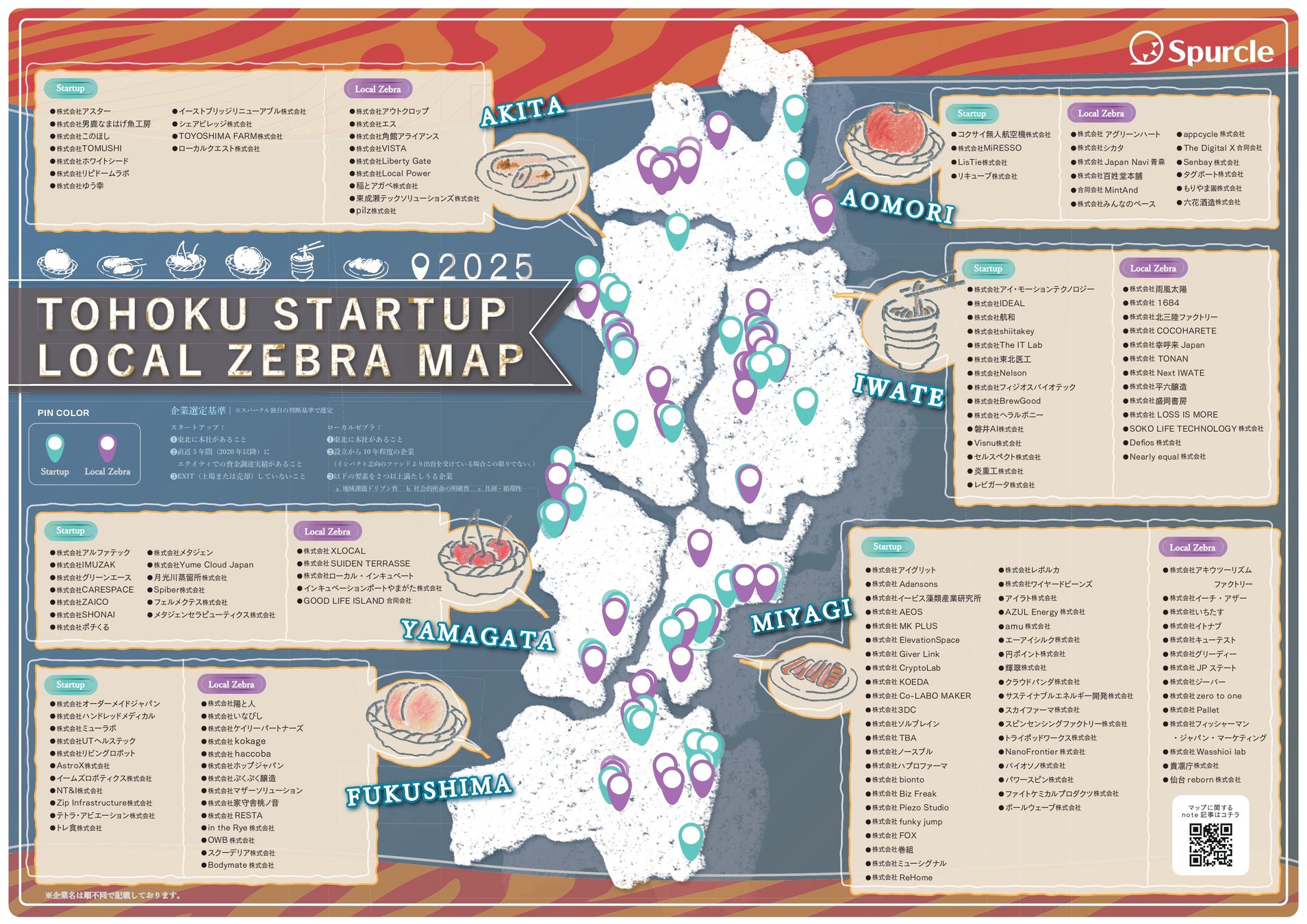 スパークル株式会社(本社:宮城県仙台市、代表取締役:福留 秀基)は、東北地域のスタートアップ・ローカルゼブラエコシステム強化を目的に、東北全体のスタートアップ・ローカルゼブラをまとめた『東北スタートアップ・ローカルゼブラ地図2025』を公開いたしました。