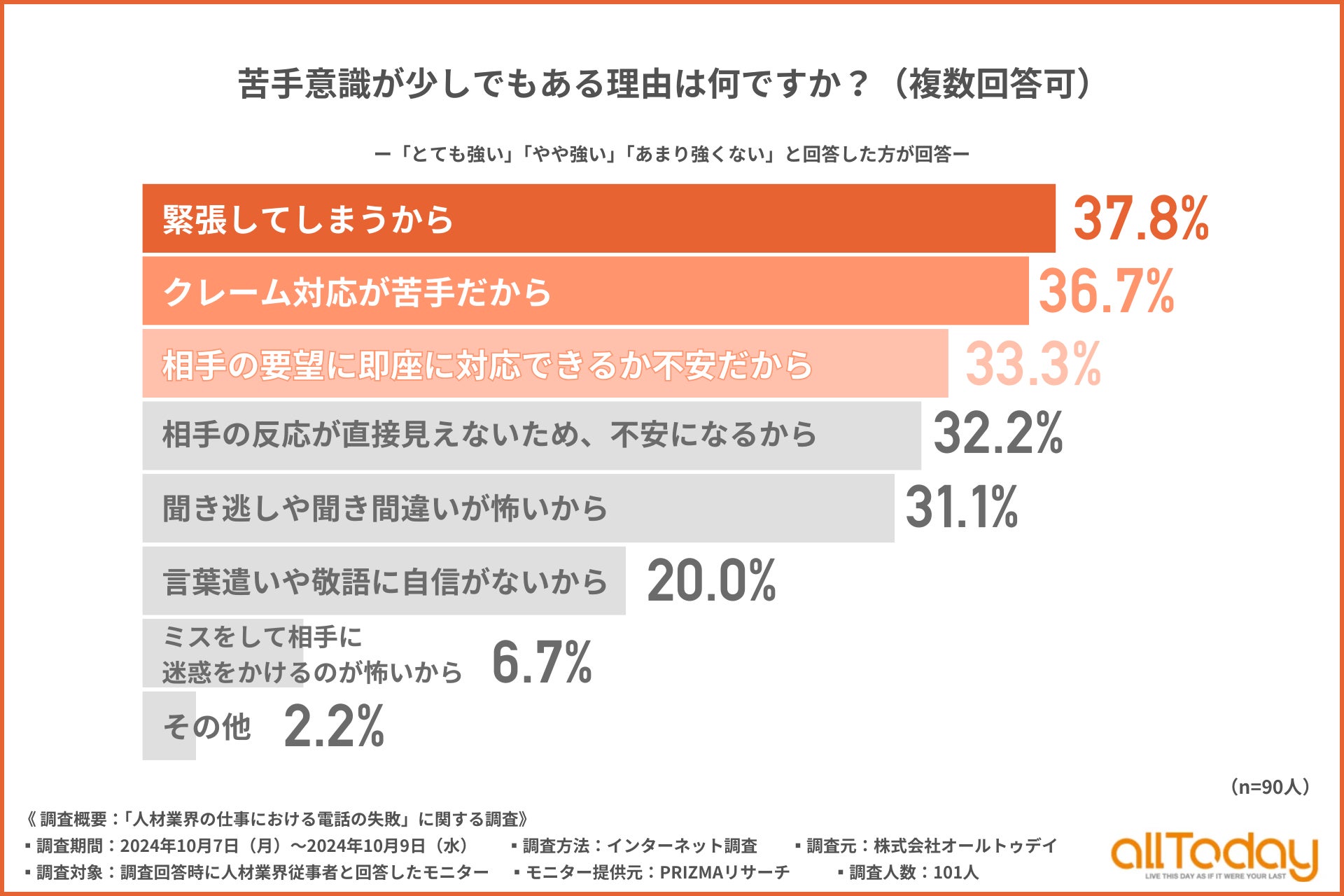 【オールトゥデイ|調査レポート】電話対応に苦手意識が強いと回答した人材業界従事者は半数以上!