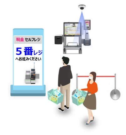カメラを用いて空いているレジを自動的に検知し、買い物客に案内することで、従業員による誘導を削減し、従業員の業務や店舗オペレーションの効率改善を検証します。