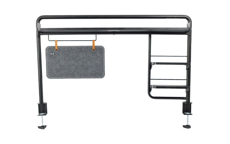 本製品は机の上の空間に物が置けるようになるクランプ式デスクラックです。
