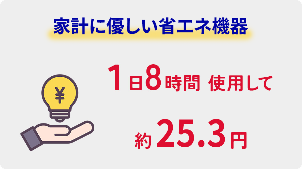 本製品の消費電力は102W程度です。電気代にもやさしく、ポータブル電源などでも駆動できる程度の電力なので、キャンプや車中泊などのアウトドアでもご利用いただけます。