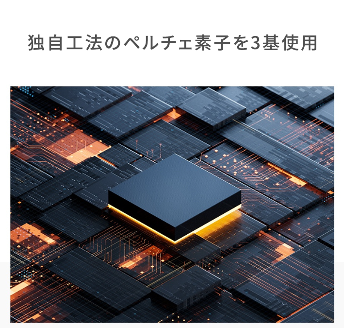 特殊な部品に電流を流すと片方は発熱、片方は冷却ができる電子部品です。