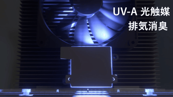 内部電子機器を冷却、放熱するために吸気排気を行います。吸気した空気は光触媒にて消臭してから外部に放出します。