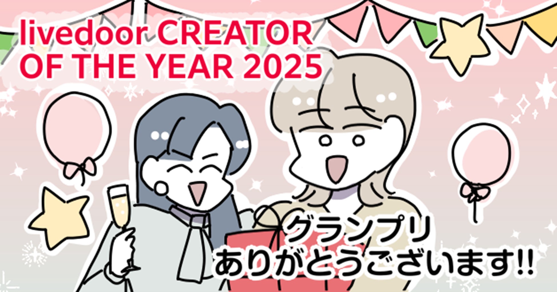 このたび「livedoor CREATOR OF THE YEAR 2025」にて最優秀グランプリを受賞できて本当に光栄です!日々、あるあるネタやエッセイ漫画を読んでくださっている読者の皆さま、そして応援してくださるすべての方のおかげでいただけた賞だと強く感じています!
