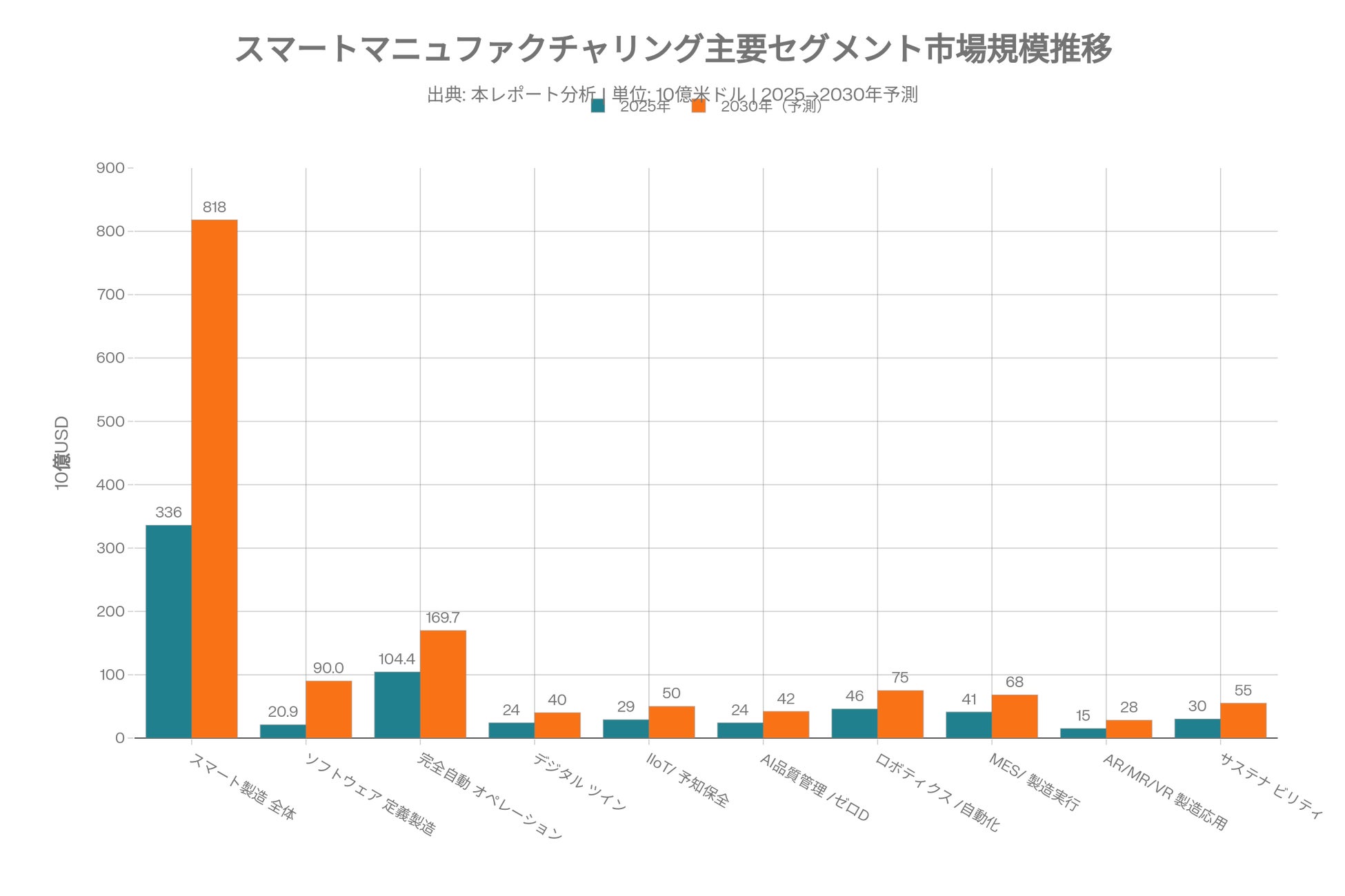 PepsiCoの3Dツイン+AIオーケストレーション事例に代表されるように、工場の完全自動オペレーション市場は2025年の1,044億ドルから2030年に1,697億ドル(CAGR 10.2%)へ成長する。AIエージェントがボトルネック解析から生産スケジューリングまでを自律的に遂行する時代が現実になりつつある。