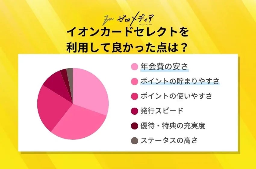クレジットカードを利用して良かったとしてあげられるのは「年会費の安さ」「ポイントの貯まりやすさ」「発行スピード」が上位の傾向