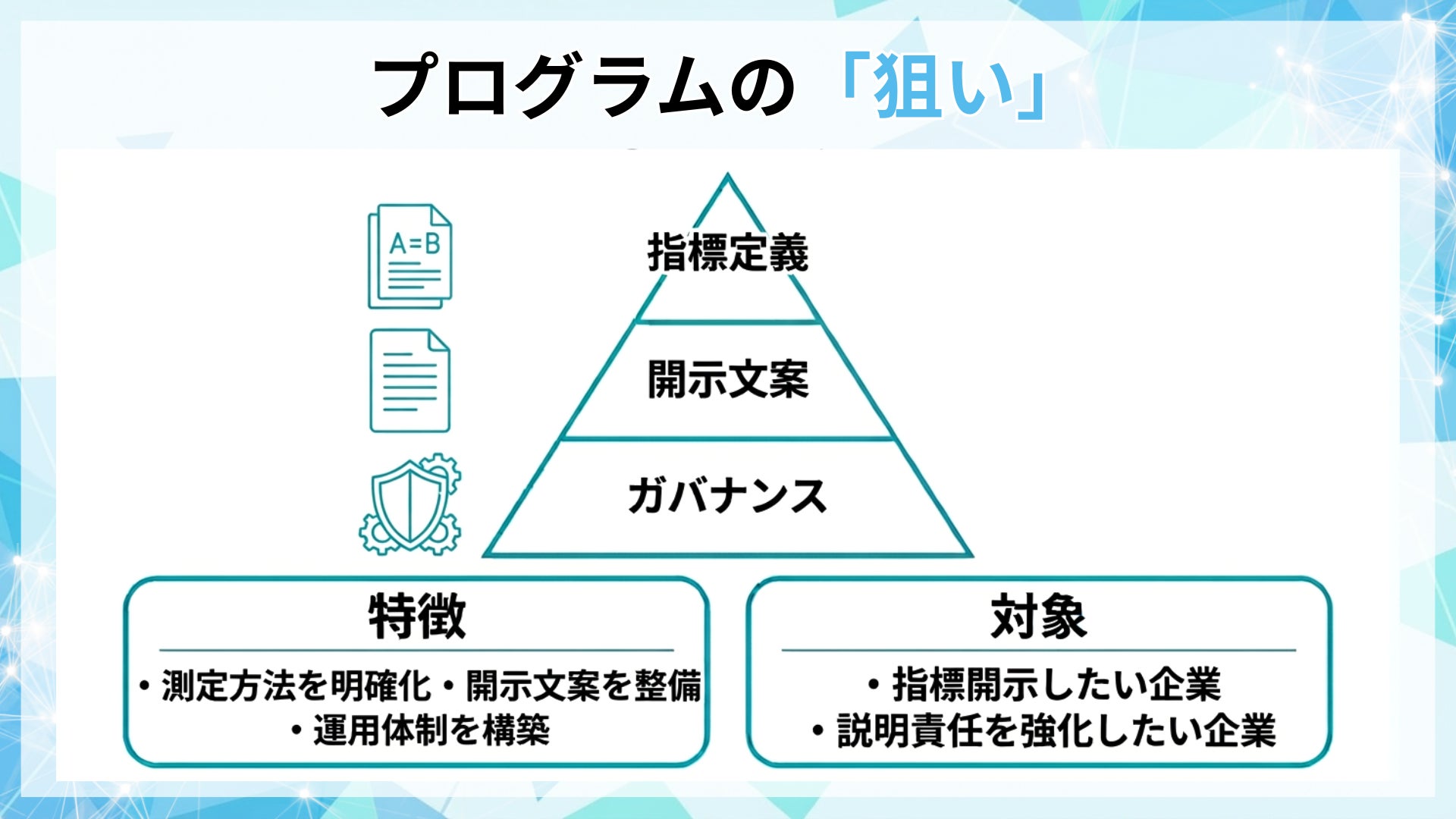 支援概要(指標定義+開示文案+ガバナンス)