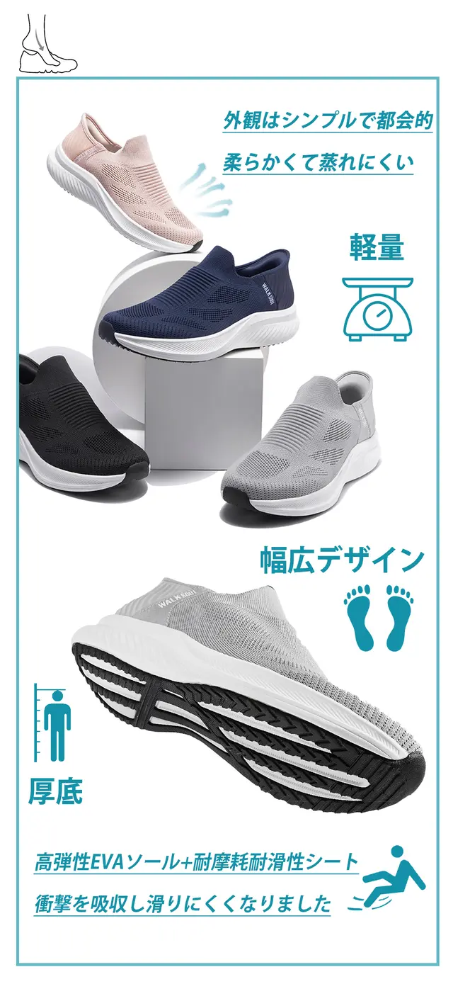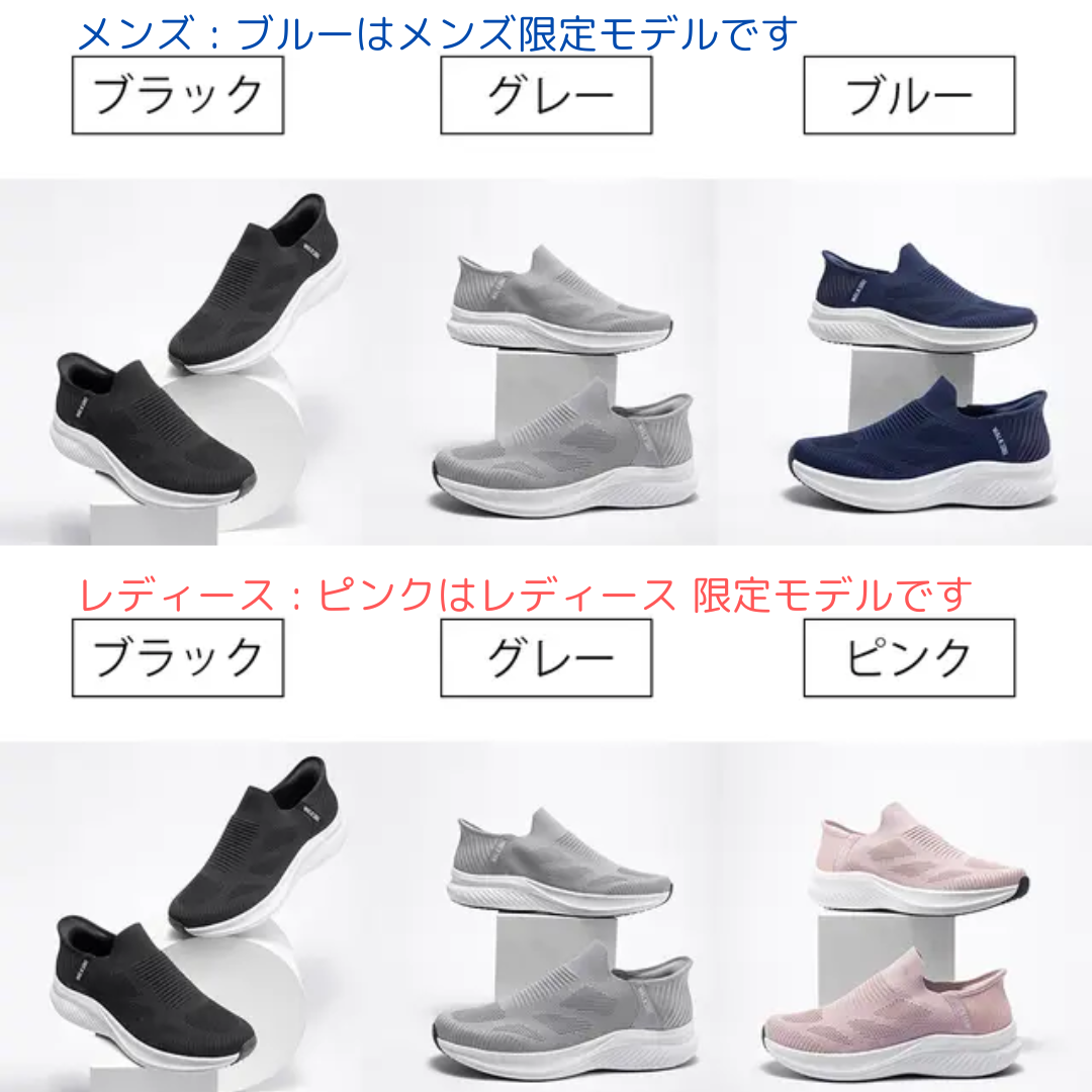 「手や靴べらを使わずに履ける」「履きやすくて便利」「軽くてお手入れが簡単」というメリットはそのままに更に「カラー」と「機動性」がグレードアップ!