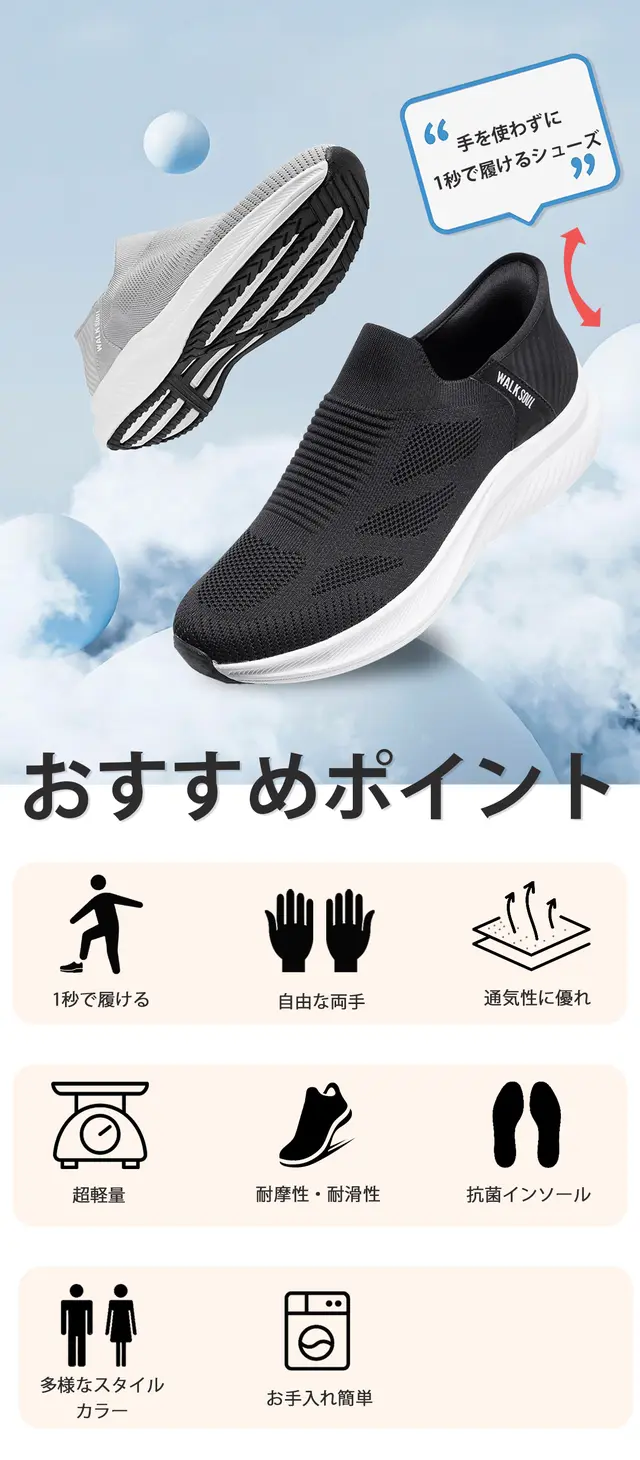 製品名:1秒で着脱できるシューズ