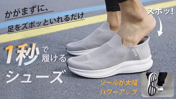 ① 足を入れるだけ、手や靴ベラは必要なし!「1秒で履けるシューズ」がパワーアップして再登場